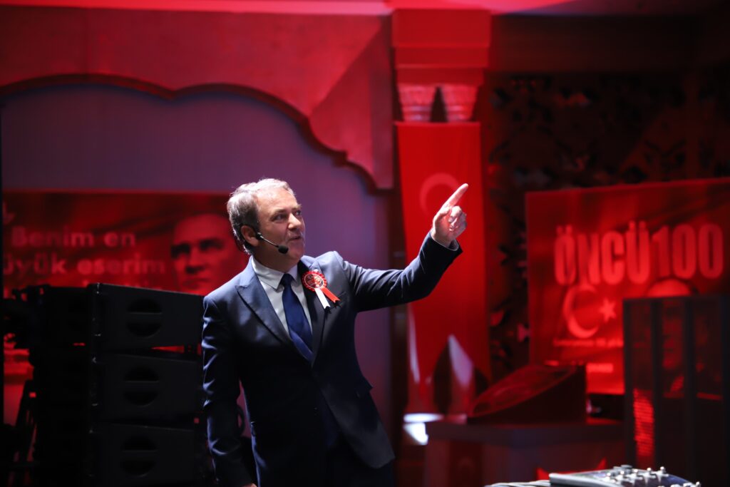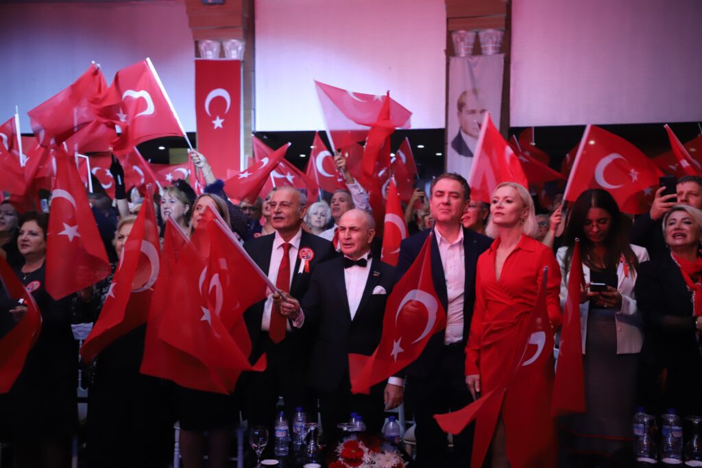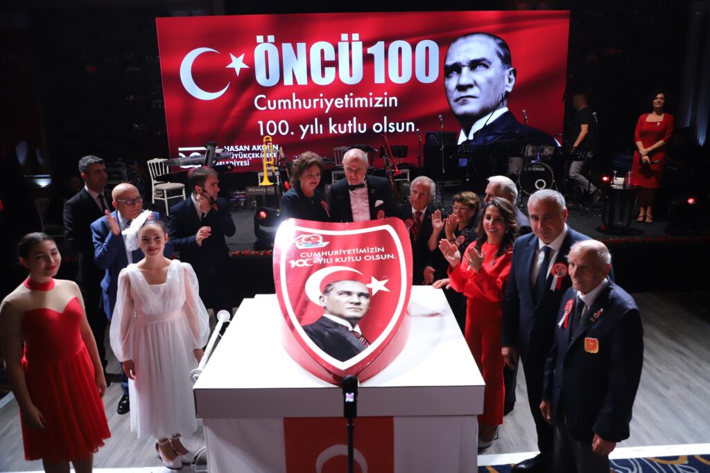 Zeybek ve dans gösterileriyle gecenin ilerleyen saatlerine kadar devam eden baloda, Cumhuriyetimizin 100’üncü yılı için dev bir pasta kesildi. Salonu dolduran yüzlerce davetlinin ellerinde Türk bayraklarıyla söylenen şarkı ve danslara eşlik etmeleri Cumhuriyet coşkusunu zirveye taşıdı.