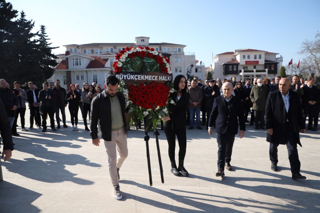 Büyükçekmece Belediye Başkanı Dr. Hasan Akgün, CHP Büyükçekmece İlçe Başkanı Halis Çiçekçi, Büyükçekmece Gençlik Platformu üyelerinin Atatürk Anıtı’na çelenk takdiminin ardından, İstiklal Marşımızın okundu ve saygı duruşu yapıldı.