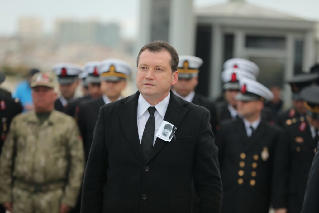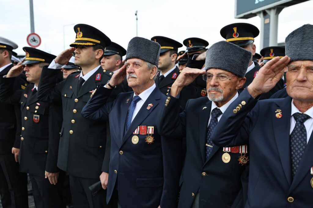 Saat 09.05’te çalan sirenlerle iki dakikalık saygı duruşunda bulunuldu, ardından İstiklal Marşı okundu.