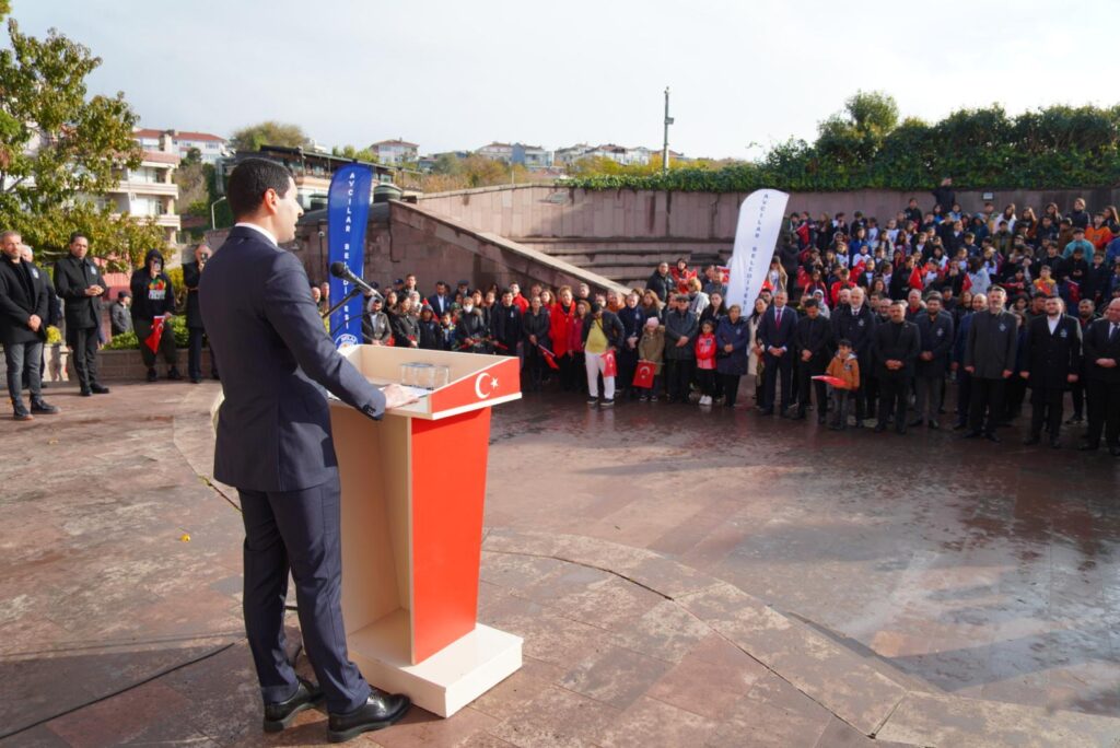 Vatandaşlar tarafından konuşmasına coşkuyla karşılık bulan Çaykara; “Atatürk’ün yaktığı Cumhuriyet ateşi bugün daha güçlü yanmakta! Her birimiz bu ışığı daha ileri taşımakla görevliyiz. Onun açtığı yolda yılmadan ilerlemek, Cumhuriyetimizin temel ilkelerine sahip çıkmak ve daha aydınlık yarınlara yürümek için her birimiz bu fenerin koruyucusuyuz. Atatürk’ün aydınlattığı yol, bizim için güçlü bir gelecek demektir. Bizler bu yolda yürürken, onun aziz hatırasını ve devrimlerini yaşatacağız. Bu ulusa bıraktığı değerli mirası koruyacak ve yücelteceğiz. 10 Kasım’da onu kaybetmiş olmanın hüznünü bu sorumlulukla yaşayacağız. Bugün burada, ona olan minnetimizi ve saygımızı sunarken, her birimiz o ışığın bir parçası olduğumuzu unutmadan; Atatürk’ün fikirlerini, ilke ve inkılaplarını yürekten benimseyerek geleceğe yürüyeceğiz. Sonsuz bir minnet ve saygıyla… Ruhun şad olsun Atam.” İfadelerini kullandı.