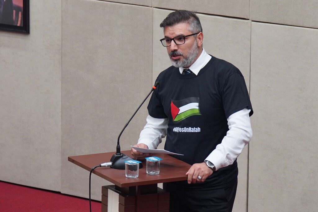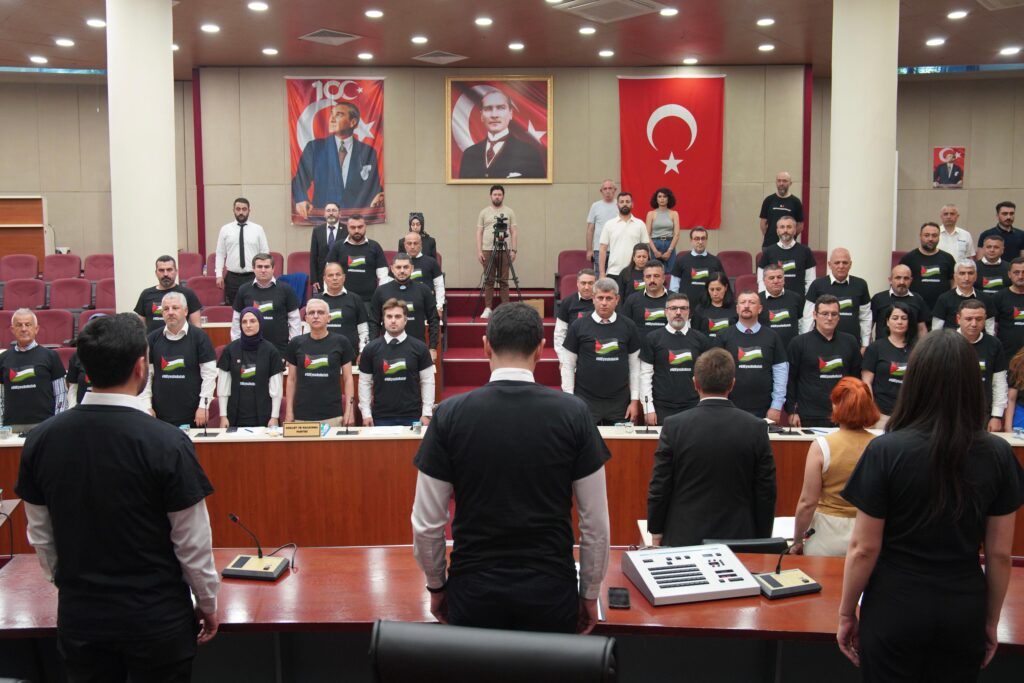 Belediye Meclisi Haziran ayı 1.Birleşiminde bütün meclis üyeleri parti ve grup gözetmeksizin toplantıya siyah üzerinde Filistin bayrağı bulunan ve #AllEyesOnRafah yazan tişört ile katıldı.
