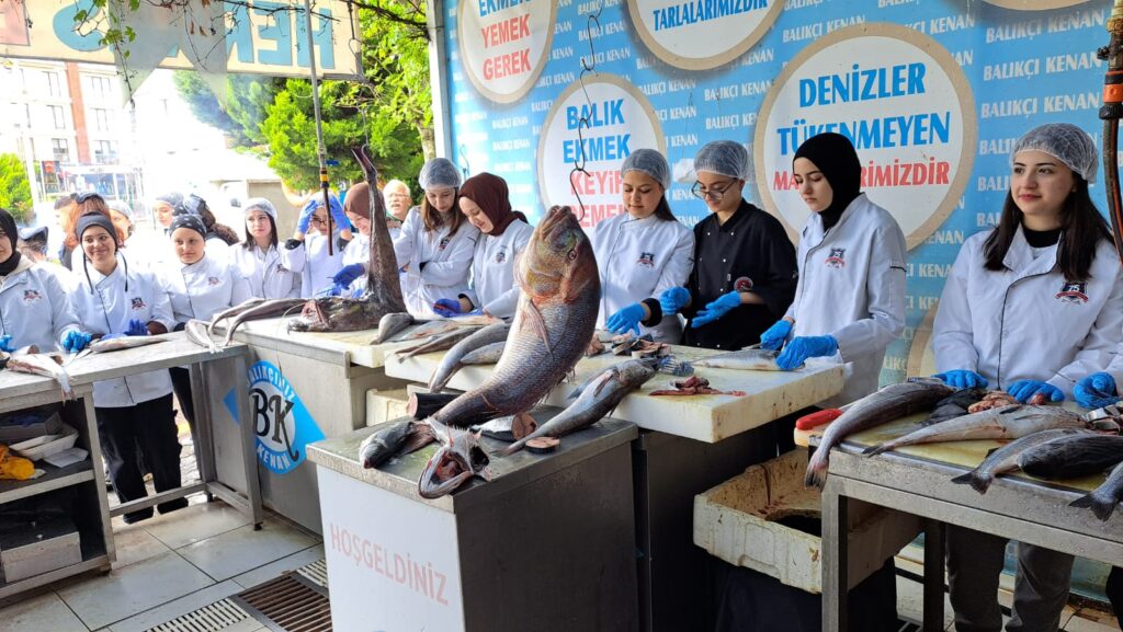 Beylikdüzü 75. Yıl Cumhuriyet Mesleki ve Teknik Anadolu Lisesi’de aşçılık bölümünde eğitim gören öğrenciler, balıkçı Kenan Balcı’nın tavsiyeleri ve tecrübeleri ile birlikte balık temizleme yöntemlerini uygulamalı bir şekilde öğrendi. Öğrencilere tek tek balıkların temizlenmesi hakkında teknik bilgiler veren usta balıkçı, daha sonra öğrencilerle birlikte ızgaranın başına geçti.