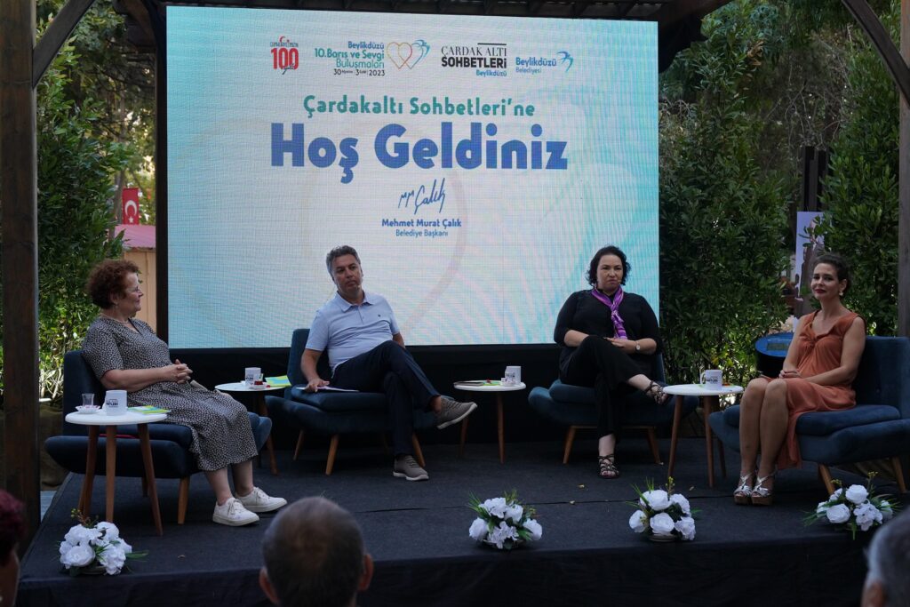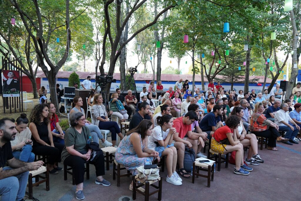 Her gün farklı bir konunun ele alındığı Çardak Altı Sohbetleri bu kez, Prof. Dr. Ahmet Yıldız, Hassa Anne olarak bilinen Ece Kumkale ve Prof. Dr. Ayşe Yüksel’i konuk etti. Eğitimin en önemli sorununun niteliksizleşme ile beraber sınıfsallaşma olduğunu belirten Yıldız, “Aslında bizim cumhuriyetimiz bir eğitim cumhuriyetidir. İlk kuruluş dönemine baktığınızda Köy Enstitülerinden Millet Mekteplerine kadar eğitim yoluyla bir ülkenin inşası düşünülmüştür. Geldiğimiz noktada ne yazık ki yine eğitim yoluyla Cumhuriyetin yıkılma çabalarına tanıklık ediyoruz” şeklinde konuştu. Eğitimin her şeyin temelinde olduğunu belirten Ece Kumkale, “Bu konuyu konuşmak çok önemli. Her zaman umut olduğunu düşünüyorum. Umudumuzu kaybettiğimizde Atatürk’ün başardıklarına ve bize neler öğrettiğine dönmek gerekiyor” dedi. Çağdaş Yaşamı Destekleme Derneği’nin yaptığı çalışmalara da değinen Yüksel ise “17 kız öğrencisiyle başladığımız yolculuğumuzda 105 bin kız öğrenciye burs verdik. Atatürk’ün bize emanet ettiği Cumhuriyet devrimi ve onun ilkeleri sonsuza kadar yaşasın diye ömrümüz yettiğince emek vermeye söz veriyoruz” ifadelerini kullandı. Söyleşinin ardından çiçek ve plaket takdimini Zehra Çalık gerçekleştirdi.