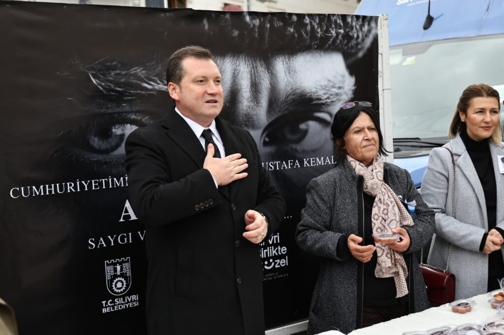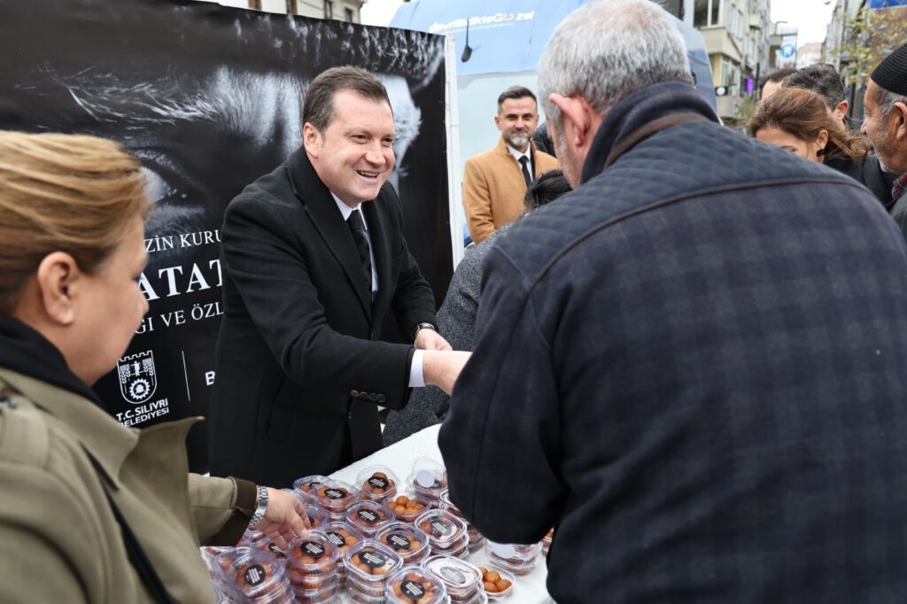 Silivri Belediye Başkanı Bora Balcıoğlu, Ulu Önder Gazi Mustafa Kemal Atatürk’ün vefatının 86’ncı yıl dönümü dolayısıyla okutulan Mevlid-i Şerif’in ardından Uğur Mumcu Meydanı’nda lokma ikramında bulundu.
