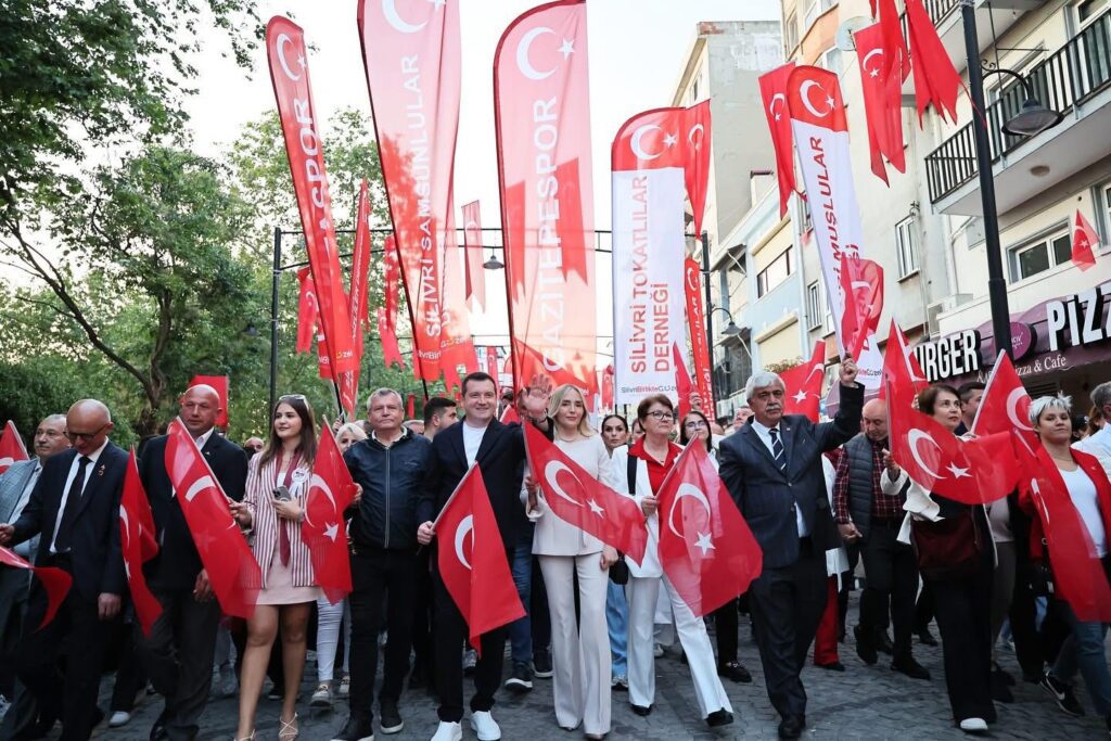 Silivri sokaklarını 19 Mayıs’ın bağımsızlık ruhu sararken, 60 metrelik dev Türk bayrağının açıldığı an, meydandaki kalabalık tarafından büyük alkış ve coşkuyla karşılandı. Kırmızı beyaza bürünen Silivri’de, bayrak adeta gökyüzünü selamladı. Gençlik Yürüyüşü’nün coşkulu kalabalığı, Atatürk Meydanı’nda son buldu. Ancak heyecan burada da bitmedi; kutlamalar, meydanda düzenlenen konser ve etkinliklerle devam etti.