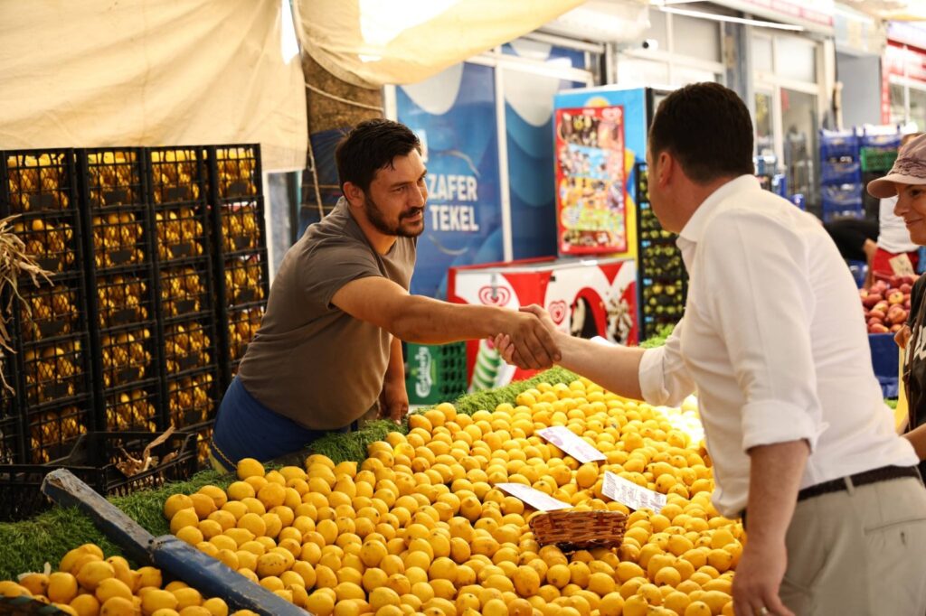Başkan Balcıoğlu, pazar ziyaretinde esnafla sohbet ederek, onların sorunlarını ve beklentilerini dinledi. Pazar esnafının işlerini daha iyi yapabilmesi için gerekli düzenlemeleri yapacaklarını belirten Balcıoğlu, “Esnafımızın taleplerini dinlemek ve sorunlarına çözüm üretmek bizim için çok önemli. Bugün burada esnafımızla ve hemşehrilerimizle bir araya gelerek onların ihtiyaçlarını dinledik ve çözüme kavuşturmak üzere notlarımızı aldık,” dedi.