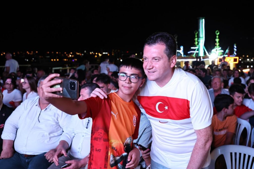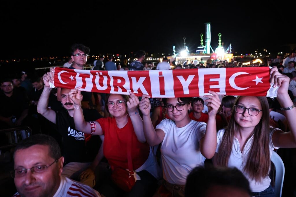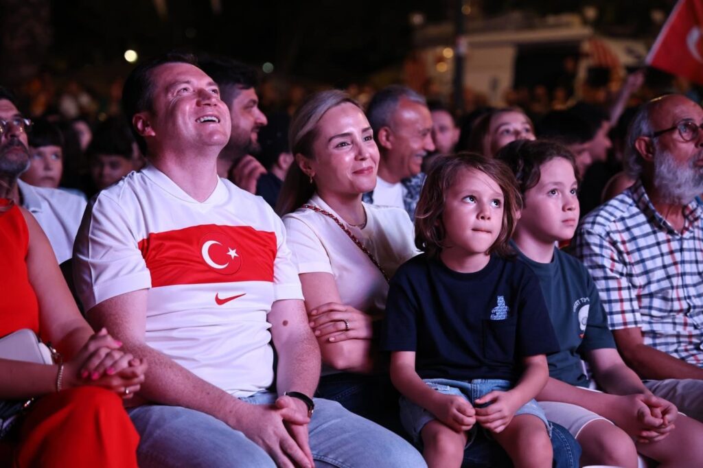 Silivri Belediyesi’nin Silivri Sahili Atatürk Meydanı’nda kurduğu dev ekranda gösterilen maç, vatandaşlar tarafından büyük bir ilgi ve heyecanla takip edildi. Başkan Balcıoğlu ve ailesi, milli takımın zaferini coşkuyla kutlayan Silivrililerle birlikte maçın keyfini çıkardı.