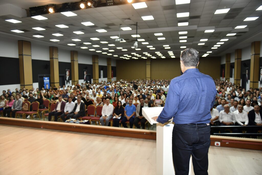 Esenyurt Belediyesi’nde personellere yönelik periyodik olarak sürdürülen eğitim seminerleri devam ediyor. Belediye Kültür Merkezi’ndeki seminerin ardından çalışma arkadaşlarına seslenen Esenyurt Belediye Başkanı Kemal Deniz Bozkurt, görevlerinin Esenyurtluları mutlu ve huzurlu kılmak olduğuna dikkat çekti.