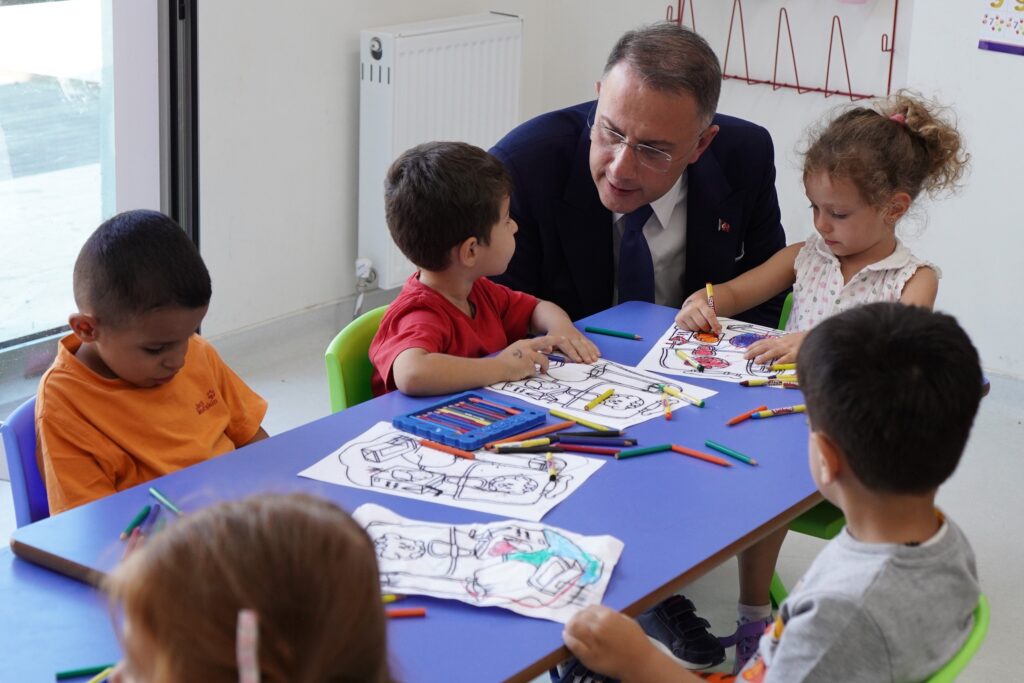 Beylikdüzü Belediye Başkanı Mehmet Murat Çalık, Yuvamız Beylikdüzü Şehit Öğretmen Necmettin Yılmaz Gündüz Çocuk Bakımevi’nde eğitim alan öğrencilerin ilk ders gününe katıldı. 2023- 2024 eğitim- öğretim yılının ilk ders gününde öğrencilerin mutluluklarına ortak olan Başkan Çalık, minik öğrencilerle de bol bol hatıra fotoğrafı çektirdi. Başkan Çalık, açık oyun alanları ile ortak etkinlik alanlarında öğrencilerle sohbet ederek, iyi dersler diledi. Gündüz Çocuk Bakımevi öğretmenleriyle de bir araya gelen Başkan Çalık, yeni dönem öncesi talepleri de dinledi.