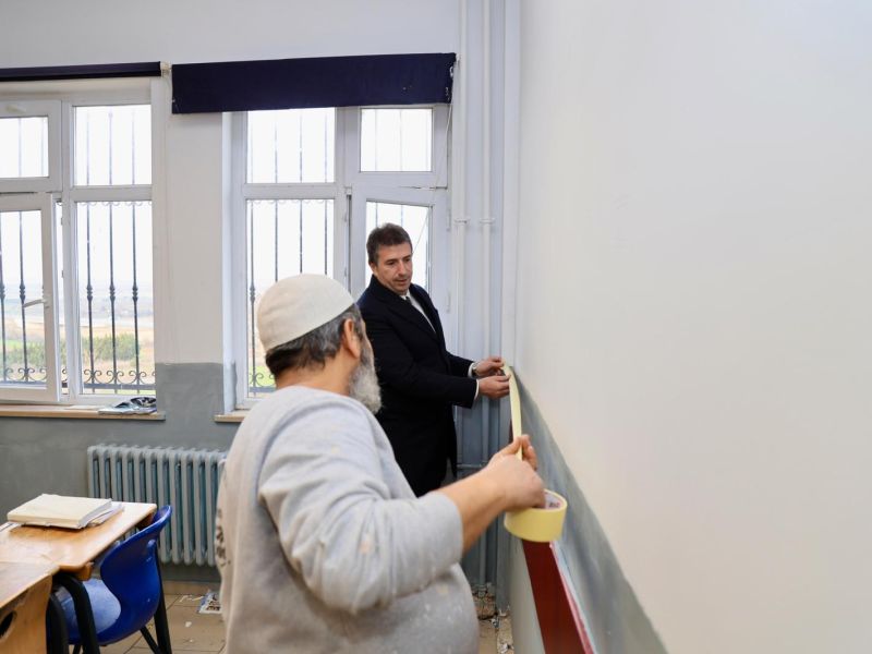Başkan Erhan Güzel, bugün Gazi İlkokulu ve Atatürk Anadolu Lisesi’nde devam eden bakım ve iyileştirme çalışmalarını yerinde inceledi.