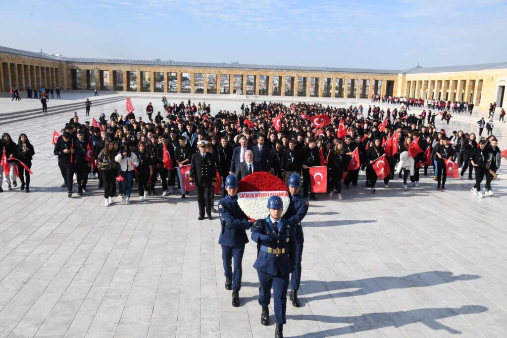Çatalca gençliği ile birlikte ellerinde şanlı bayrağımızla birlikte büyük bir gururla aslanlı yoldan yürüyen Başkan Mesut Üner, Anıtkabir’e ulaştı.