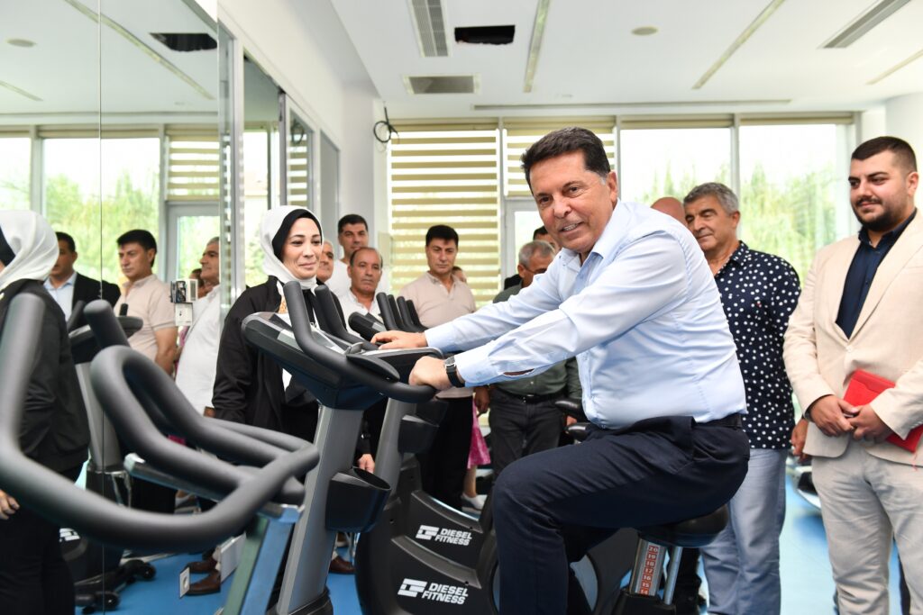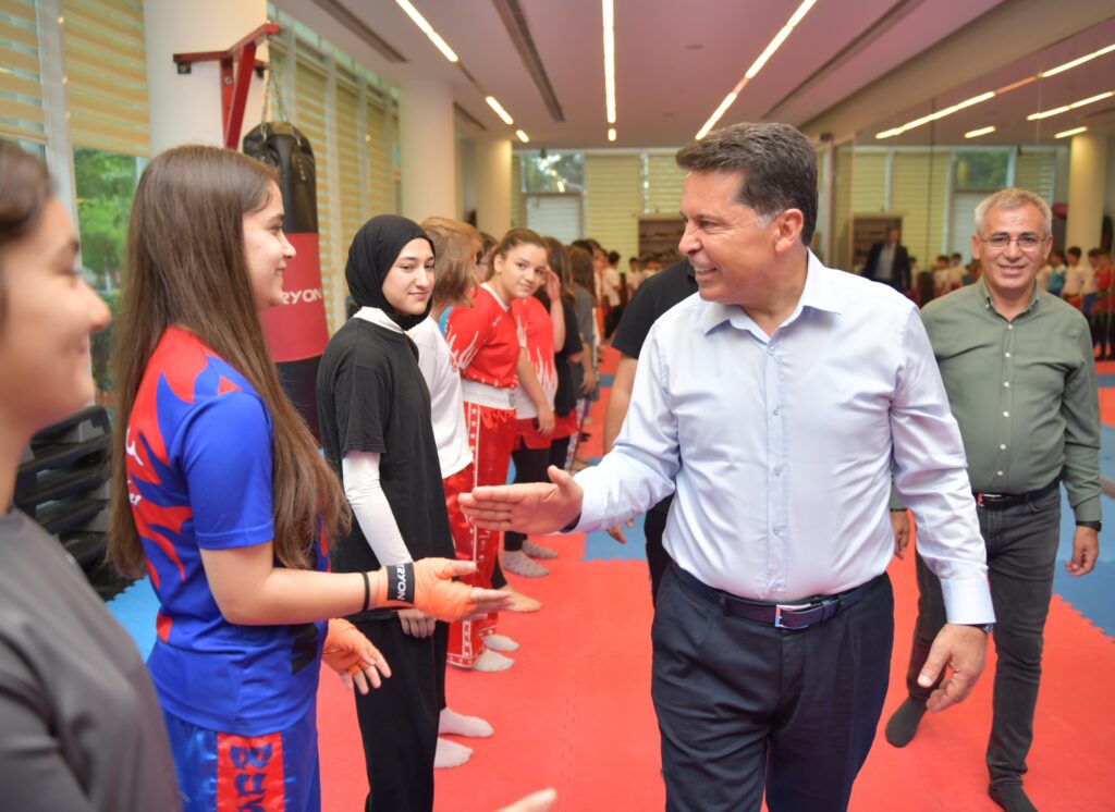 Çocuklarla hem kick boks yapan hem de masa tenisi oynayan Başkan Özer, fitness salonlarını gezerek spor yapan vatandaşlarla sohbet etti.