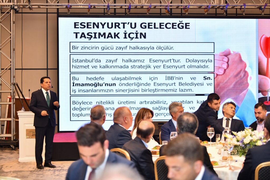 Başkan Özer, programda Esenyurt’un genel durumunu anlatan bir sunum gerçekleştirirken “Silikon Vadisi’nin İstanbul’da kurulacağı, kurulabileceği tek yer Esenyurt’tur. Bu altyapı ilçemizde var. Bize destek verin, sizin önderliğinizle Esenyurt’ta bu işi başaralım” dedi. Gerçekleştirdiği sunumda Esenyurt’un zayıf ve güçlü yönlerine de değinen Başkan Özer, “Bir zincirin gücü onun en zayıf halkasıyla ölçülür. İstanbul’un zayıf halkası ise Esenyurt’tur. Dolayısıyla stratejik yer Esenyurt’tur. Bir başarı hikâyesi yazılacaksa Esenyurt’ta yazılacaktır” dedi.