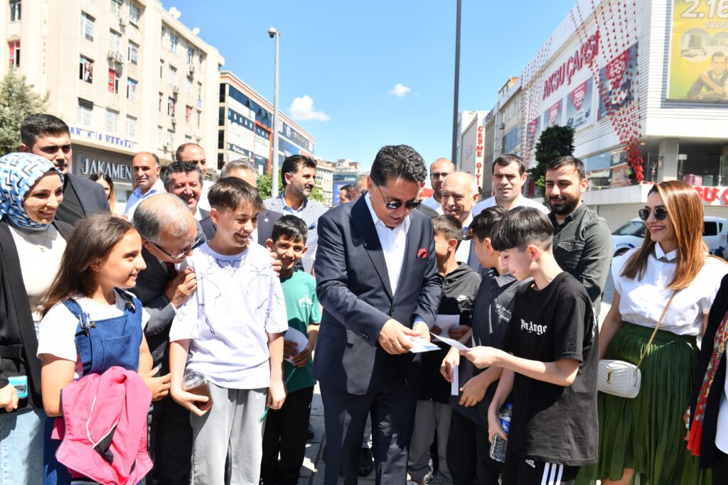 Öte yandan Cumhuriyet Meydanı’nda vatandaşlarla da bayramlaşan Özer, kendisini bekleyen çocuklara da bayram harçlığı dağıttı.