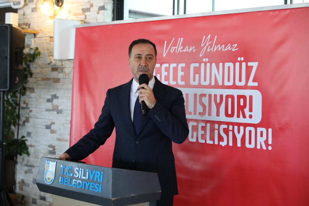 Toplantıda bir konuşma yapan Silivri Belediye Başkanı Volkan Yılmaz, “Silivri Belediyesi olarak görev süremiz boyunca Silivri’de kronikleşen birçok sorunu üzerine giderek çözdük. Geride bıraktığımız 5 yıl boyunca hayata geçirdiğimiz tüm proje ve hizmetlerin merkezine insanı koyduk. Çünkü okullar, kültür merkezleri ve spor salonları yapabilirsiniz ama o binaların içini dolduracak insan yetiştiremezseniz yaptığınız işin bir anlamı kalmaz. Bu nedenle Silivri’de yaşayan tüm çocuklarımızın ve gençlerimizin en iyi şekilde eğitim almaları ve spor yapmaları için birçok projeyi hayata geçirdik. Silivri Belediyesi olarak 5 yıl boyunca tarihiyle, kültürüyle ve doğasıyla eşsiz bir güzelliğe sahip olan Silivri’mize birçok hizmeti kazandırdık. Önümüzdeki 5 yılda da herkesin gıpta ile baktığı bambaşka bir Silivri için sizlerin desteğini bekliyoruz. 7.000 yıllık tarihi geçmişe sahip olan Silivri’de bulunan tarihi eserlere sahip çıkarak daha güzel bir Silivri için gece gündüz çalışmaya devam edeceğiz” diye konuştu.