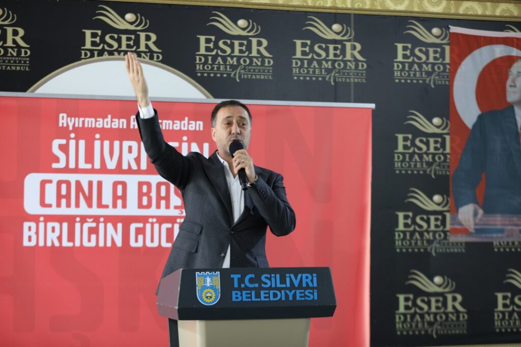 Silivri Belediyesinin hizmetleriyle ilgili bilgiler veren Başkan Volkan Yılmaz, “Silivri Belediyesi olarak tüm ekiplerimiz ve mesai arkadaşlarımızla 5 yıldır sahadayız. Biz bu koltuğu sırça köşk olarak görmüyoruz. Bu makamları fakire, fukaraya, garibe, gurebaya, yetime, düşküne, darda kalana, yolda kalana ve zorda kalana hizmet edilecek, çarıkların ve çizmelerin ayaktan çıkmadığı, çalışılacak makamlar olarak gördük. Sizin çocuklarınız, gençleriniz, bu ülkenin geleceği ve sözde değil özde bir çağdaş ülke için, Gazi Mustafa Kemal Atatürk’ün kurduğu cumhuriyetin ikinci yüzyılını Türk Yüzyılı ve Türkiye Yüzyılı yapmak için yollardayız. Silivri artık kabuğuna sığmıyor. Silivri’yi tutabilmek ve durdurabilmek artık imkânsız. Silivri, İstanbul muradına kavuştuğunda Turizm Master Planıyla turistlerle dolan, eko turizmiyle ve köy turizmiyle daha da canlanan bir kent olacak. Tarihi dokusuyla herkesin yaşamayı arzu ettiği bir Silivri’yi önümüzdeki 5 yıl boyunca da göreceksiniz. Hükümet Konağı, İlçe Emniyet Müdürlüğü Binası, Jandarma Komutanlığı Binası, Selimpaşa Polis Merkezi, Millet Bahçesi, 2. Millet Bahçesi, 74 tane park, 14 tane halı saha, 4 tane stadyum, 5 tane tenis kortu, yüzme havuzları, Engelsiz Yaşam Merkezi, 7 tane sağlık ocağı, 6 tane 112 acil servis istasyonu, 6 tane sağlık evi, 35 milyon TL’lik yerli ve milli sertifikalı arpa tohumu, saman, mısır silajı, yem bezelyesi, Ayçiçek tohumu, hayvan gübrelerinin bertaraf edilmesi, tüm hayvanların aşılarının ücretsiz şekilde yapılması konuları ve daha sayarak bitiremeyeceğiz hizmetlerimizle Silivri’ye hizmetkar olmaya devam edeceğiz. Silivri Belediyesi olarak bunlarla yetinecek, ‘Tamam biz bunları yaptık artık Silivri’de iş bitti’ diyecek bir karakterde değiliz. Daha çok çalışarak ve ‘Durmak yok yola devam’ diyerek Silivri’yi güzelleştirmeyi sürdüreceğiz” dedi.