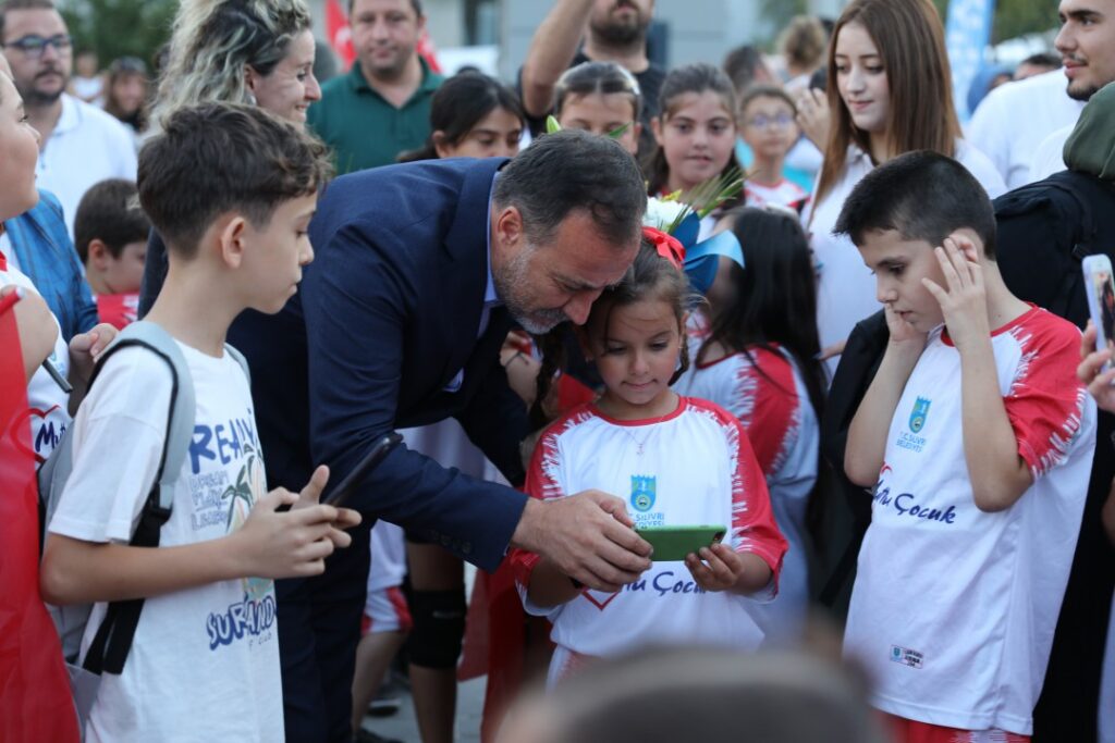 Törende bir konuşma yapan Silivri Belediye Başkanı Volkan Yılmaz, “Öncelikle bu kadar güzel bir atmosferde, böylesine coşkulu ve kalabalık bir törende çocuklarımızla, gençlerimizle olmaktan duyduğum memnuniyeti ifade ederek sözlerime başlamak istiyorum. Değerli çocuklar, sevgili genç kardeşlerim; biz sizlere, sizlerin annelerine sözler vermiştik. Demiştik ki ‘Silivri sporla, kültürle, sanatla bezenmiş bir kent olacak. Sizlere spor sahaları, kültür merkezleri, eğitim alacağınız tesisler inşa edeceğiz.’ İşte bugün de Bulgaristan Türklüğünün gururu Naim Süleymanoğlu’nun ismini taşıyan, Naim Süleymanoğlu Spor Tesislerinde sizlerle bir aradayız. Size verdiğimiz sözleri, size vadetmiş olduğumuz tesisleri fazlasıyla hayata geçirmiş olmaktan ve buna devam ediyor olmaktan büyük bahtiyarlık duyuyorum. Biz göreve geldiğimiz ilk günden beri çocuklarımız bir yabancı dil konuşabilsin, bir spor dalında lisanslı sporcu olabilsin ve yine kültür ve sanat aktiviteleriyle bir enstrüman çalabilecek bireyler olsun istedik. Bugün, yaz dönemi boyunca süren okulumuzda 11 branşta, 25 eğitmenimiz tarafından 6-15 yaş aralığında 3.753 çocuğumuza; basketbol, voleybol, yüzme, futbol, cimnastik, tenis, masa tenisi, tekvando, özel sporcular, satranç ve okçuluk alanında vermiş olduğumuz eğitimlerin kapanış merasimindeyiz. Burada bir sayfayı kapatırken bu defteri kapatmıyoruz. Silivri sporun, kültürün, sanatın ve eğitimin başkenti olmaya devam edecek. Daha büyük ve daha güzel tesislerle, daha iyi imkânlarla çocuklarımıza ve gençlerimize eğitim vermeye, onları sporla buluşturmaya, Gazi Mustafa Kemal Atatürk’ün ifadesiyle zeki, çevik ve ahlaklı bir gençlik yetiştirmeye devam edeceğiz. Biz buna var gücümüzle biz hazırız. Çocuklarımız ve gençlerimiz de buna hazır ki bu kadar güzel bir topluluk, bu kadar güzel bir kalabalık bu akşam bizimle birlikte. Necip Türk milletinin daha ileriye, daha ileri ufuklara yol açabilmesi için, yol alabilmesi için çocuklarımıza ve gençlerimize yatırım yapmaya devam ederek var gücümüzle çalışacağımın buradan sözünü vermek istiyorum. Şunu da ifade edeyim; Silivri’ye yapmış olduğumuz 11 tane futbol sahası, 2 tane stadyum, kapalı yüzme havuzu var. Ayrıca projesi devam eden 9.000 metre kapalı alandaki bir kapalı spor salonu, dışarısında futbol sahaları, tenis kortları, basketbol sahaları bulunan 60.000 metrekare bir spor adasını sizlerin hizmetine sunacağız. Ben bu duygu ve düşüncelerle çocuklarınıza, genç kardeşlerimize buradan bir söz daha vermek istiyorum. Hiç meraklanmasınlar Volkan ağabeyleri görev süresinin sonuna kadar onlarla dertlenmeye, onlarla kederlenmeye, onlar için spor tesisi yapmaya devam edecek. Sizlerle beraber el ele tutuşup, gönül gönüle verip bu şehre, bu şehrin güzel insanlarına hizmetkâr olmaya devam edeceğiz. İyi ki varsınız, iyi ki bizimlesiniz!” dedi.