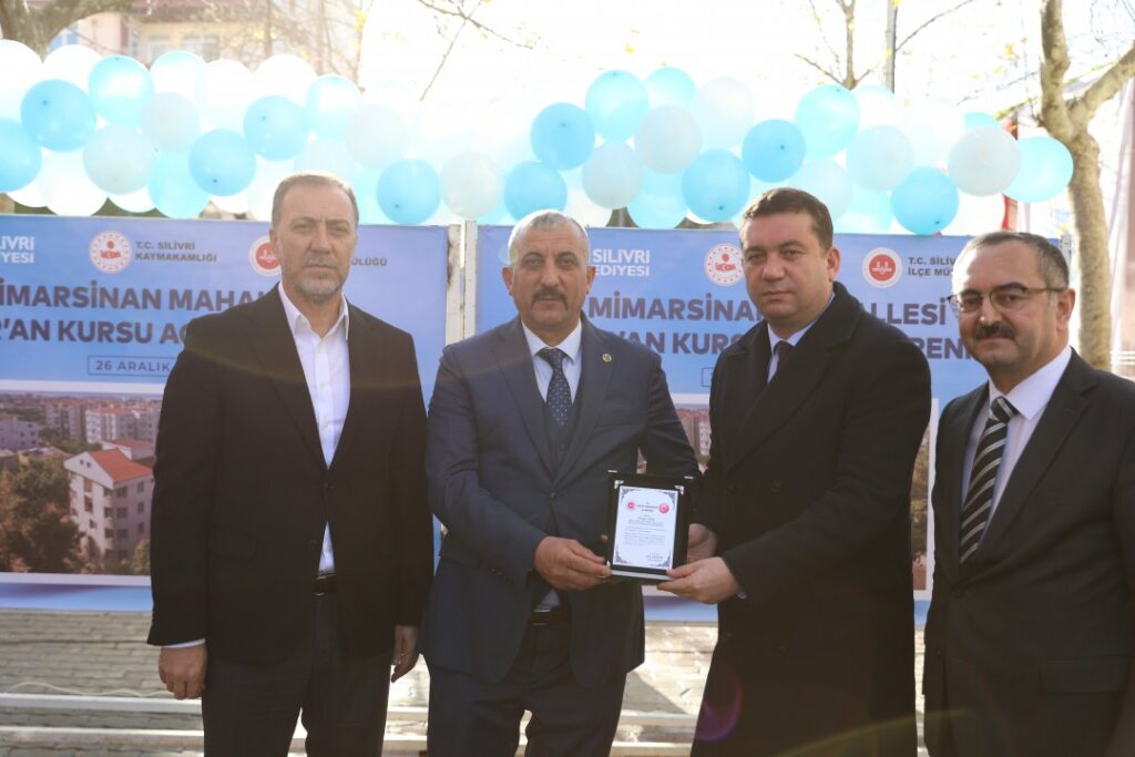Mimarsinan Mahallesi Kur’an Kursu için açılış töreni düzenlendi. Törende konuşan Başkan Yılmaz, “Silivri’yi bütüncül bir anlayışla ele alarak, ilçemizin yıllarca ihmal edilmiş, ötelenmiş ve görmezden gelinmiş bütün sorunlarına hiçbir siyasi kaygı gütmeden el attık” dedi.
