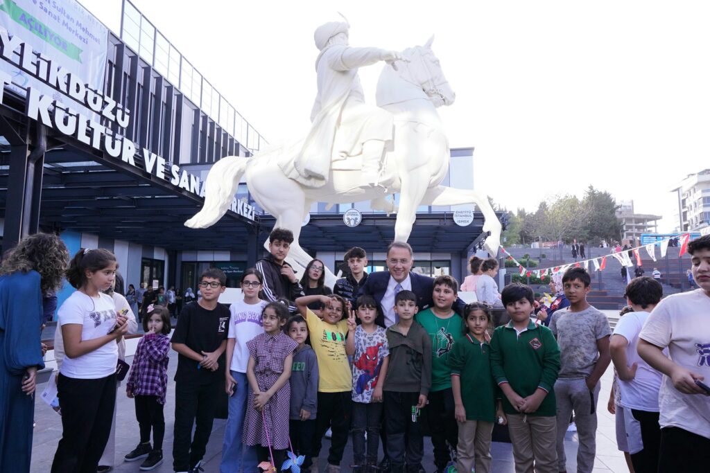 Beylikdüzü Belediye Başkanı Mehmet Murat Çalık ise “Bağımsızlık mücadelesinde Atatürk ve silah arkadaşlarının kazandığı parlak zaferler, ancak ve ancak bir kültür ordusuyla kalıcı olarak yaşatılır. Bizler de, Cumhuriyetimizin bizden istediği fikri hür, vicdanı hür, irfanı hür nesilleri yetiştirmek üzere yola çıktık. Bu yolda tüm projelerimizi 100. yıla yakışır şekilde tek tek hayata geçiriyoruz. Büyük önderimiz Atatürk’ün bize verdiği muasır medeniyetler hedefi gereği olarak, 13 Ocak 2021 tarihinde temelini attığımız Beylikdüzü Fatih Sultan Mehmet Kültür ve Sanat Merkezi de bu amaçla gerçekleştirdiğimiz icraatlarımızın sadece biri. Bu merkez ile Belediye hizmetlerimizin toplumun tamamı için erişimi kolaylaşacak, mahallede adil bir sosyal yapının oluşmasına katkı sağlayacak ve potansiyelleri açığa çıkaracağız. Biz burada sadece kültür merkezi yapmadık, aynı zamanda 3 Köy 3 Meydan Projesi’nin Yakuplu Meydanı ayağını da hayata geçirmiş olduk. Meydanı çok anlamlı ve ilham verici bir sürprizle Fatih Sultan Mehmet heykeliyle tamamladık. İçerisinde barındırdığı fonksiyonlar ve hizmetler ile inşallah bu tesisimiz hem Yakuplu’nun sıcak mahalle kültürünü pekiştirecek hem de Beylikdüzü’ne yeni bir nefes olacak. Beylikdüzü Fatih Sultan Mehmet Kültür ve Sanat Merkezi; salt bir kültür merkezinden çok öte, bir yaşam kompleksi aslında” ifadelerini kullandı.