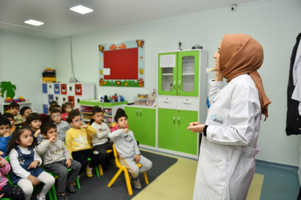 Esenyurt Belediyesi, ilçe genelindeki kreşlerde eğitim gören öğrencilere, diş bakımı ve sağlıklı beslenme alışkanlıkları hakkında eğitim verdi.