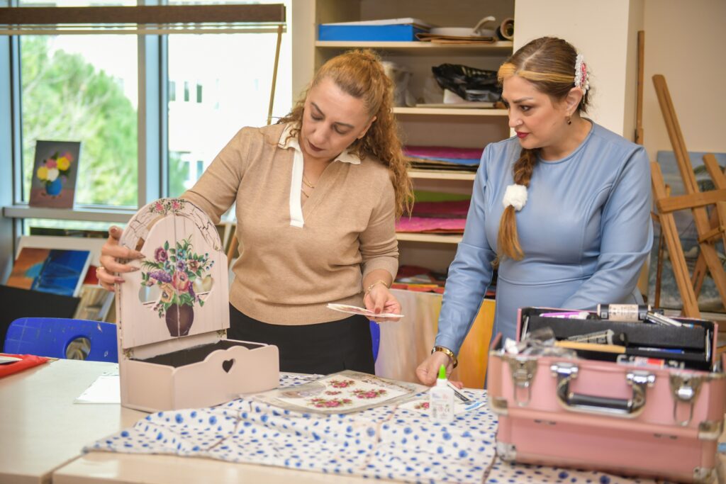 Dekoratif el sanatları öğretmeni Neslihan Yıldırım Kara, kursiyeriyle hem öğrendiklerini hem de keyifli vakit geçirdiklerini ifade ederek şöyle konuştu; “Kursiyerlerimize öncelikle teknik eğitim vererek başlıyoruz. Derslerde ortalama 22 ila 25 farklı teknik öğretiyoruz. Ardından kursiyerler, öğrendikleri tekniklerle istedikleri ürünleri boyayarak kullanıma hazır hale getiriyorlar. Biz sadece ham ahşap boyamıyoruz; aynı zamanda dönüşüm mobilyası, bakır, cam gibi malzemeleri de işliyoruz. Evimizde kullanmadığımız eşyalar, hatta bazen çöpe atılmış bir sehpa bile boyanarak tekrar kullanıma kazandırılıyor. Dönüşüm sloganımızı ise; “atmıyoruz, yeniliyoruz” Olarak belirledik. Kursiyerlerimiz burada hem keyifli vakit geçiriyor hem de yeni arkadaşlıklar ediniyor. Ayrıca kursiyerlerimiz yaptıkları ürünleri sergilerimizde satışa sunarak aile bütçesine katkıda bulunuyorlar. Eğer siz de keyifli vakit geçirmek istiyorsanız, kurslarımıza online kayıt yaparak derslerimize katılabilirsiniz.”