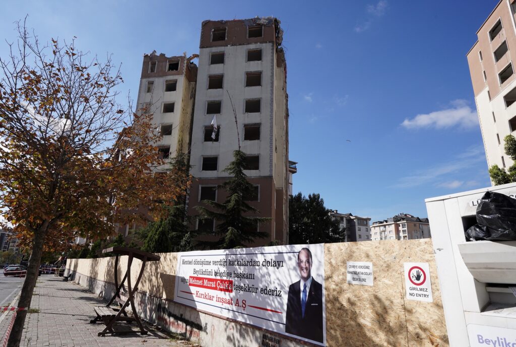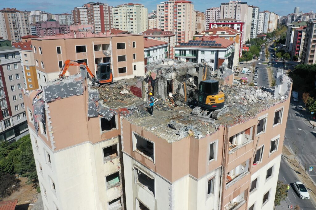 Beylikdüzü Adnan Kahveci Mahallesi’nde 60 daireden oluşan bir sitenin kentsel dönüşüm çalışmaları kapsamında yıkımına başlandı. İlçedeki tüm kentsel dönüşüm süreçlerini destekleyerek yakından takip eden Beylikdüzü Belediye Başkanı Mehmet Murat Çalık, kentsel dönüşüm sürecini bütüncül bir yaklaşımla ele aldıkları ifade etti. Yıkılan 2 bloklu sitenin yerine 84 daireli güvenli binaların yapılacağını dile getiren Başkan Çalık, siteye ait otopark ve yeşil alanlarının da yapılacağını söyledi.