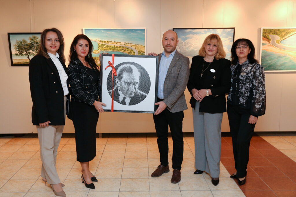 Sergi açılışına Küçükçekmece Belediyesi Kültür ve Sosyal İşler Müdürü Deniz Gürbey, sergide eseri bulunan sanatçılar ve sanatseverler katıldı. Sanatçılar Deniz Gürbey’e Atatürk tablosu hediye ederken, Gürbey’de onlara plaket ve çiçek takdiminde bulundu.