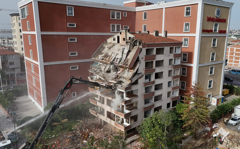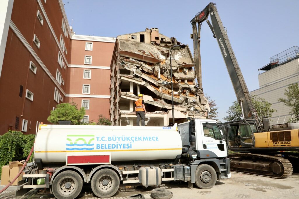 Beklenen İstanbul depremine hazırlıksız yakalanmamak için kentsel dönüşüm çalışmalarının aralıksız sürdüğü Büyükçekmece’de deprem rsiki taşıdığı belirlenen 7 katlı bina belediye ekiplerinin gözetiminde yıkıldı.