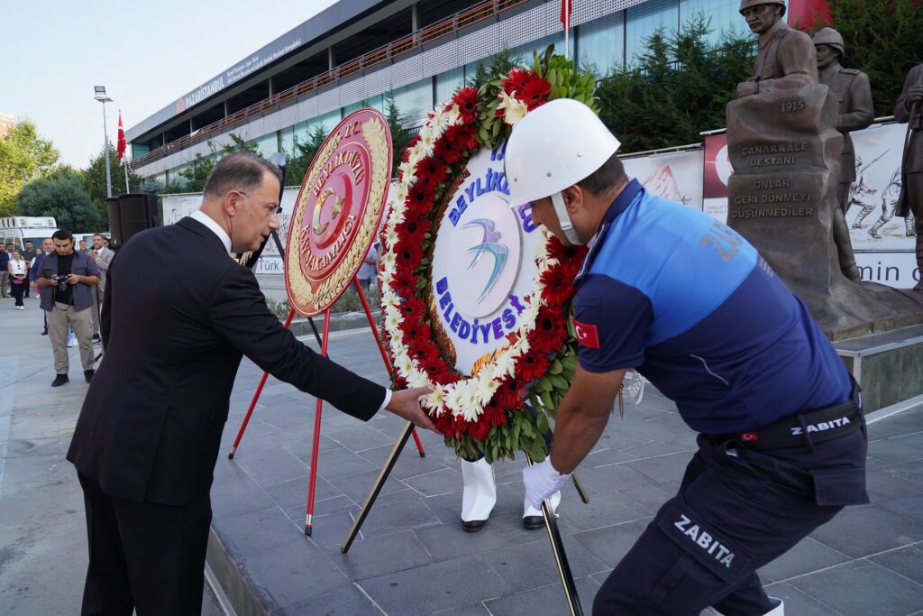 30 Ağustos’un tarihin en önemli dönüm noktalarından biri olduğunu ifade eden Beylikdüzü Belediye Başkanı Mehmet Murat Çalık, “Şüphesiz her milletin tarihi kendisi için değerli. Ancak Türk milletinin bir farkı var. Bizim tüm iniş çıkışlarımıza rağmen tarihe kazıdığımız bir inadımız var. Şartlar ne olursa olsun; biz hep barışın, sevginin, dayanışmanın tohumlarını inatla ekeceğiz; vatanımızdan, bağımsızlığımızdan, barış ve kardeşlikten, Atatürk’ten asla vazgeçmeyeceğiz. Zaferin 101. Cumhuriyet’in 100. yılında; mutlu bir millet olmak için attığımız büyük-küçük her adımı zafer sayacağız. Bizler Beylikdüzü’nde kin ve nefret söylemlerini, kutuplaşmayı, ayrımcılığı barındırmamaya niyetliyiz. Bizim en büyük vazifemiz; insani evrensel değerler çerçevesinde, hak, hukuk, adalet ortak paydasında buluşarak barışı sürekli kılmaktır” şeklinde konuştu.