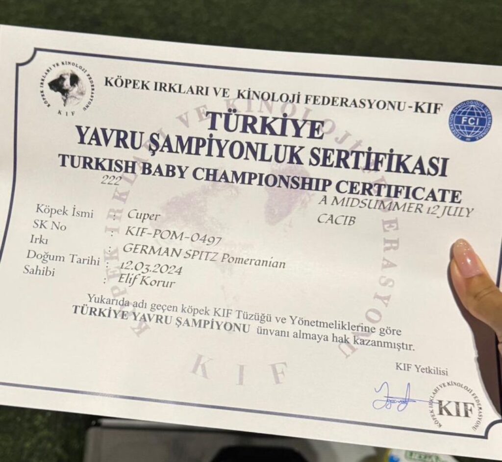 Büyükçekmece’den yarışmaya katılan Elif & Mert Korur çiftinin German Spıtz Pomeranian cinsi Best, 8 yarışmada kendi ırkında 6 birincilik diğer ırklarda 2. ve 3. üncü oldu Puppy Türkiye Yavru Şampiyonu kategorisinde 1. gelerek şampiyon oldu.