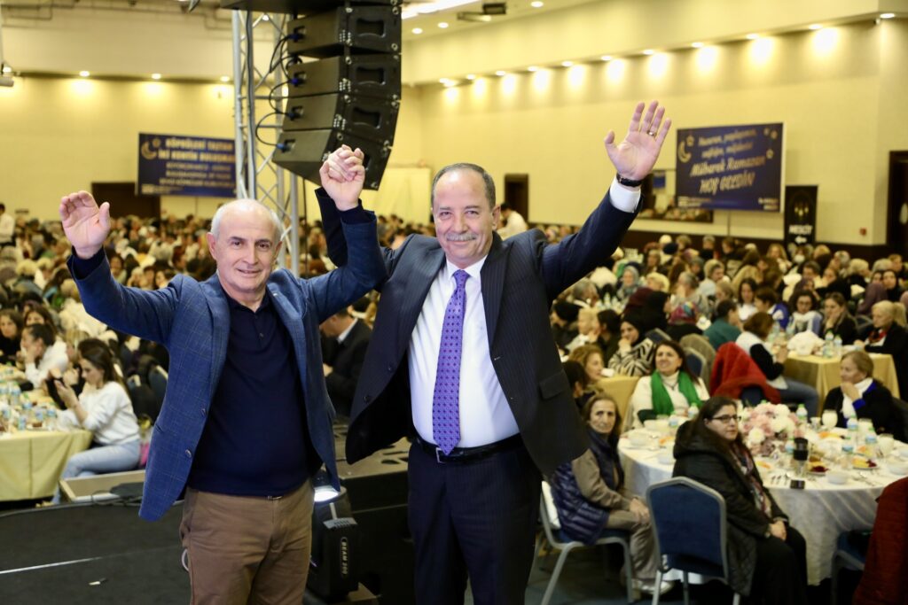 Büyükçekmeceli kadınlar için düzenlenen iftar yemeğine birlikte katılan Başkan Akgün ve Gürkan sevgi gösterileriyle karşılandı. Edirne Belediye Başkanı Recep Gürkan, Kırkpınar’da 3 kez üst üste şampiyon olan güreşçilere başpehlivanlık altın kemeri verildiğini hatırlatarak; “Hasan Başkan, 6 dönemdir seçim kazanıyor ve şimdi de 7’i’ce döneme hazırlanıyor. İlk 3 dönem için kendisine daha önce bir başpehlivanlık altın kemeri takdim etmiştim. Şimdi 6. dönemi tamamladı onun içim kendisine ikinci kez başpehlivanlık altın kemerini takdim ediyorum” diye konuştu.