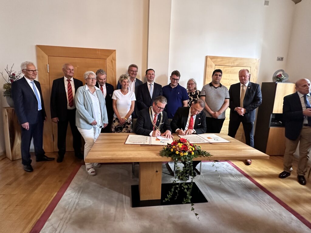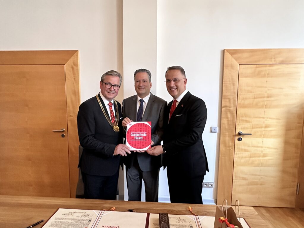 Beylikdüzü Belediye Başkanı Mehmet Murat Çalık, Almanya’nın Paderborn kentinde Beylikdüzü ile Paderborn arasında kardeş şehir protokolünün ilk etabını imzaladı. Bu protokol ile iki kent arasında ticari, teknolojik, kültürel ve sanatsal alanlarda bağlar kuvvetlenecek ve iş birliği yapılacak. Yarının öncüsü Beylikdüzü için global ölçekte çalışmaların devam edeceğini dile getiren Başkan Çalık, “Söz verdiğimiz gibi ‘Beylikdüzü Yarının Öncüsü’ olacak ve dünya ile konuşacak. Çin’den Almanya’ya Beylikdüzü’nü uluslararası alanda ilişki kuran bir kent olma yolunda ilerletiyoruz. Bu protokolün de ülkemize ve kentimize hayırlı olmasını diliyorum” şeklinde konuştu.