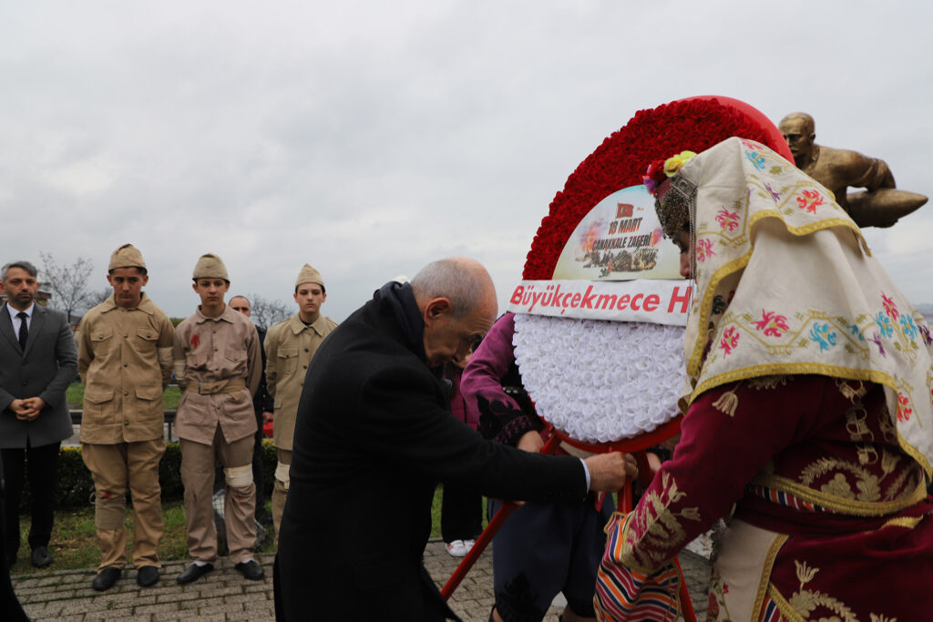 Büyükçekmece Belediye Başkanı Dr. Hasan Akgün, Gazi Mustafa Kemal Atatürk ve Çanakkale şehitlerini rahmet ve minnetle anarak, şöyle konuştu: “Bugün 18 Mart, gurur günümüz. 18 Mart 1915 Osmanlı’nın, Türk ordusunun kahramanca dövüşüp İstanbul’u almak üzere yola çıkan emperyalist güçlerin önce gemilerini boğazın soğuk sularına gönderdiler. Sonra kara savaşlarıyla sekiz buçuk aylık bir mücadeleden sonra Çanakkale Destanı’nı yazan Yarbay Mustafa Kemal ve o günkü çarpışarak bu vatan için, devlet için, millet için, din için hayatını feda eden bütün şehitlerimizin aziz hatırası önünde bugün saygıyla eğiliyoruz. Çanakkale Destanı, Türk milletinin en büyük şeref madalyalarından bir tanesidir. Çanakkale Destanı olmasaydı, Anafartalar Zaferi olmasaydı, İstanbul işgal edilseydi bugün başka şeyler konuşmak durumunda olabilirdik. Çanakkale, Yarbay Mustafa Kemal ile değişmiştir. Çanakkale Savaşlarının yönü değişmiştir ve burada Cumhuriyetin temel taşları döşenmiş, 30 Ağustos Zafer Bayramı’ndan sonra da Türkiye Cumhuriyeti ulus devleti doğmuştur. 18 Mart günü Çanakkale Destanı’nın 110’uncu yılında başta Gazi Mustafa Kemal Atatürk olmak üzere bütün Çanakkale kahramanlarını ve bu vatan için, bayrak için, devlet için, din için toprağa düşmüş bütün şehitlerimizi minnetle, şükranla anıyoruz. Bu mübarek ramazan gününde hepsinin ruhu şad, mekanı cennet olsun.”