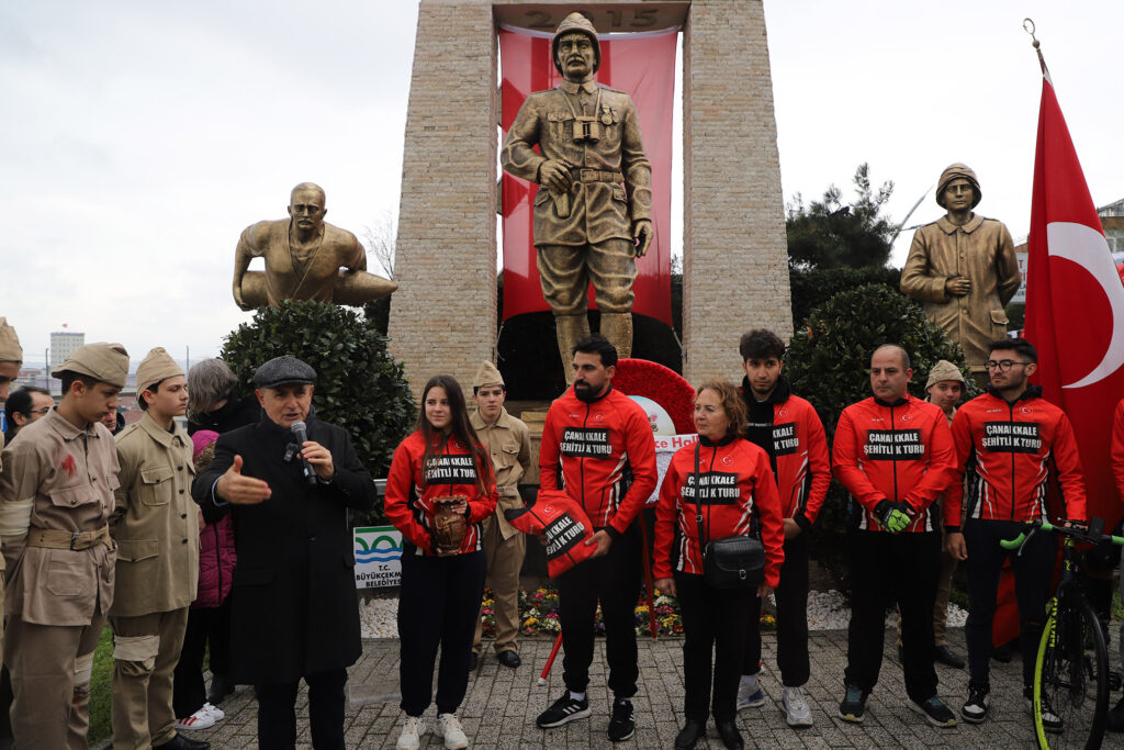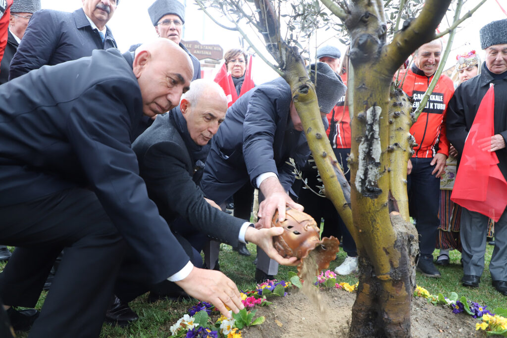Çanakkale’ye her yıl bisiklet sürerek gidip gelen Büyükçekmeceli bisiklet sporcuları tarafından getirilen Çanakkale toprağı da barışın simgesi olan zeytin ağacının altına döküldü.