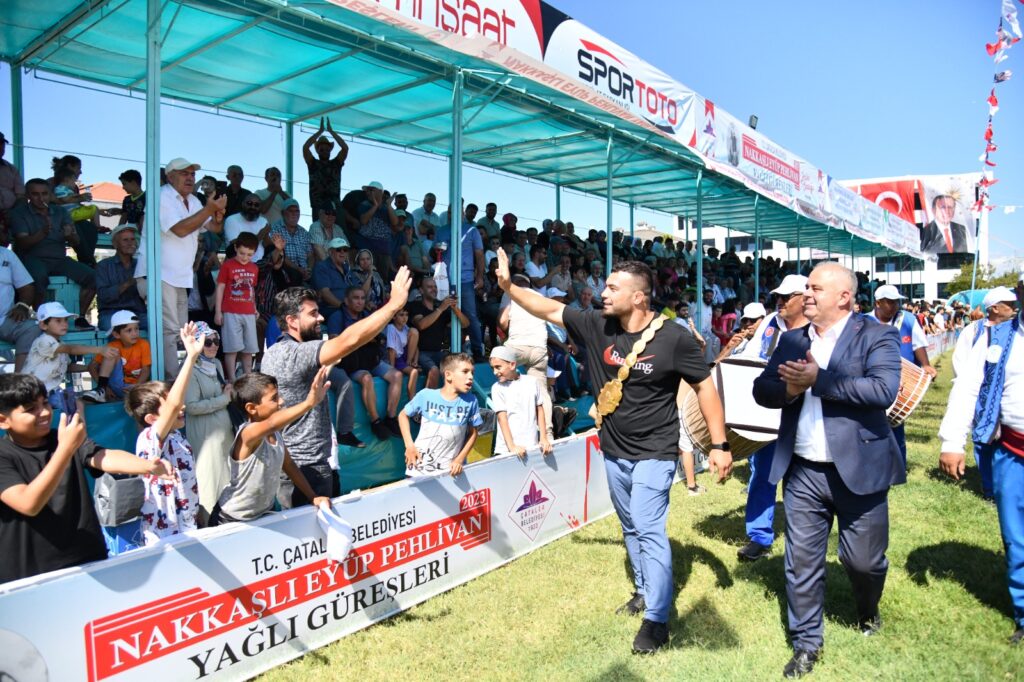 Çok çekişmeli geçen ‘’Çatalca Belediyesi Nakkaş’lı Eyüp Pehlivan Geleneksel Yağlı Güreşleri’’ güreş ağası ihalesi yine Çatalca’da çok sevilen ve sayılan Şeref Tatlı tarafından kazanıldı. Şeref Tatlı bu büyük gururu seyircilerin alkışları eşliğinde tribünleri selamlayıp yaşadı.