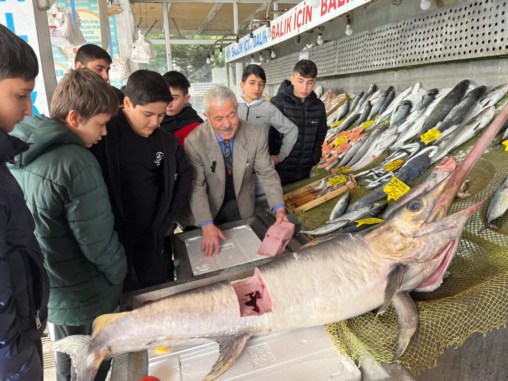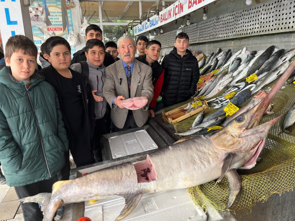 Öğrencilere balığın faydalarını anlatan Türkiye Deniz Canlıları Müzesi Kurucusu Kenan Balcı: “Kardeşlerimiz müzeyi ziyarete geldi. Onların şansına da kılıç balığı yakalanmıştı. Onlara ikram ettik. Balığın faydasını anlattık. En az haftada iki kez balık tüketmemiz gerekiyor. Balık anne sütünden sonra yıpranan dokuları onaran tek besin kaynağı. Her derde deva. Bugün ızgara, yarın tava. Sürekli balık yiyen insanlar kolay kolay hasta olmaz. Çünkü balık, vücudumuzu hastalıklara karşı koruyor. Direncini artırıyor. Denizlerimizde yüzlerce çeşit balık var. Hepsinin tadı başka. Lezzeti başka. Bu bizler için büyük bir nimet. O yüzden hem denizlerimizin, hemde balıklarımızın kıymetini bilelim” dedi.