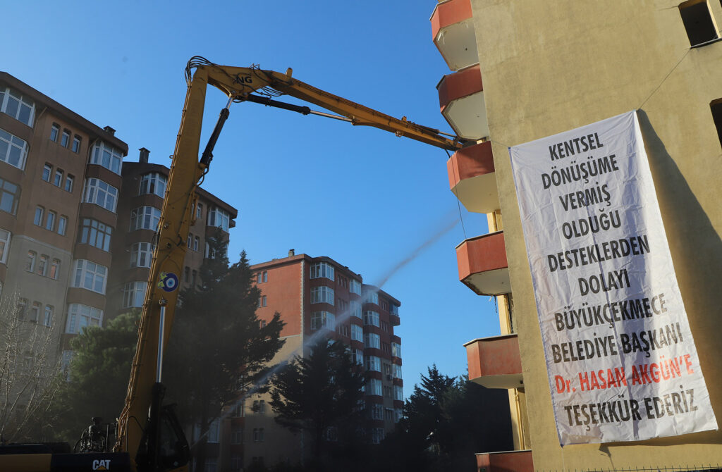 Büyükçekmece Belediye Başkan Vekili Hakan Çebi, riskli yapıların yıkım süreci ve deprem hazırlıklarıyla ilgili şöyle açıklama yaptı: ‘’Bugün Ekinoba Mahallesi Hürriyet Caddesi’nde 4 bloktan oluşan Moroğlu Sitesi’ndeyiz. Bu binaların yapılış tarihi 1992 yılı ve 4173 metrekare arsaya sahipler. Şu an önünde bulunduğumuz yıkımı yapılan blok, A blok. Toplam 32 bağımsız bölümden oluşmaktadır. Burada oturan vatandaşlarımız, belediye ile bir araya gelerek kentsel dönüşüm sürecini başlatıyorlar ve bu sürecin sonunda yapılan incelemelerde bina, riskli yapı statüsünde tespit ediliyor. Bugün de yıkım için buraya gelmiş bulunuyoruz. Yıkımdan sonra burada toplam 40 bağımsız bölümden oluşan içinde kapalı otoparkı, yeşil alanları olan bir yapı planlanmaktadır. Burada yine vatandaşlarımız, ‘’Yarısı Bizden’’ kampanyasından faydalanmayı planlanmaktadırlar. Ben bu bölgede oturan, özellikle riskli yapıda oturan vatandaşlarımıza bir an önce kentsel dönüşüm sürecini başlatmalarını ve devletimizin verdiği bu ‘’Yarısı Bizden’’ kampanyasından faydalanmalarını davet ediyorum. Hayırlı olsun diyorum.’’
