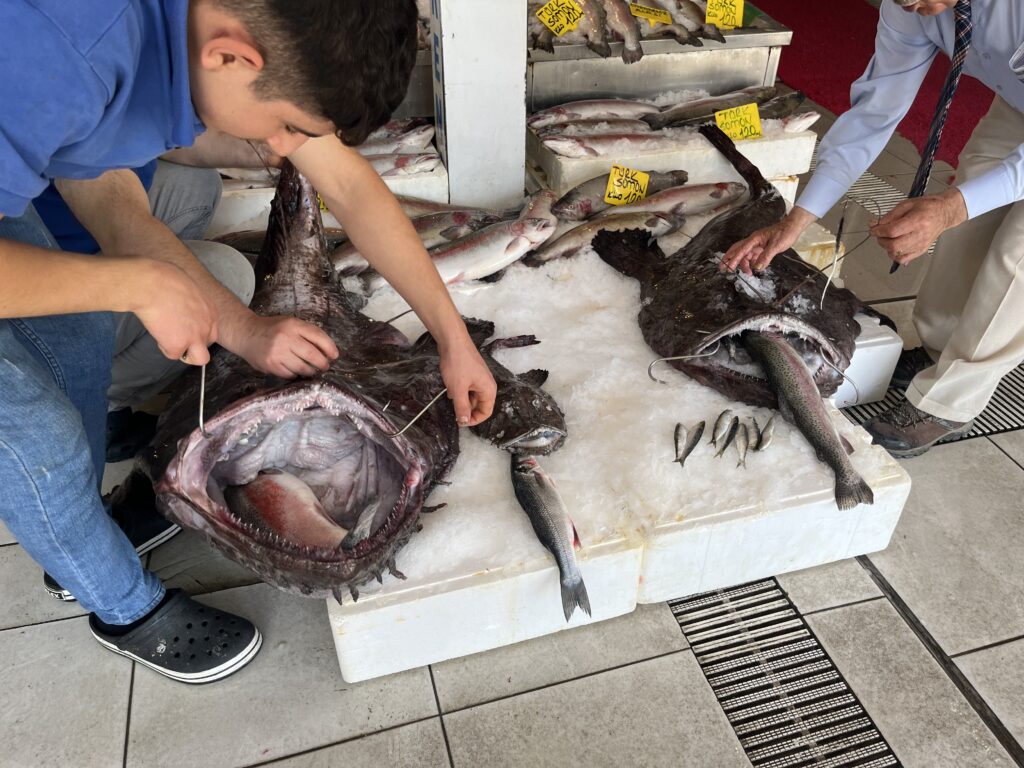 Dev Fener Balıkları’nı gören vatandaşlardan Şaban Çiçek, “Ağzında balıklar var henüz yutmaya fırsatı olmamış herhalde şaşırmamak mümkün değil. Bayağı büyük bir balık. Görmedim daha önce ilginç geldi” dedi.
