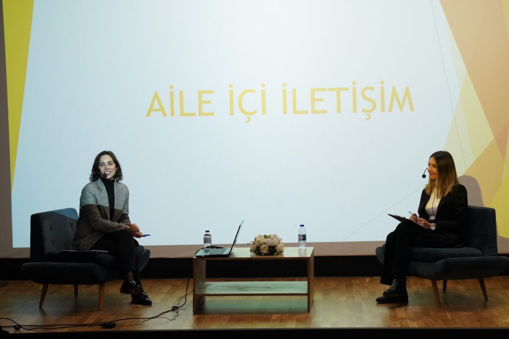 Aktif dinlemenin ve ben dilinin önemine dikkat çeken Tuğçe Seçkin Esmeray ise “Aktif dinleme karşımızdaki kişinin anlattıklarını kendi cümlelerimizle anlatarak geribildirim vermektir. Çocuğumuz bize bir şey anlattığında yalın ve basit cümlelerimizle onu anladığımızı ifade etmek için bu yöntemi kullanıyoruz. Aktif dinleme hem bizim dikkatimizi canlı tutar hem de çocuğun anne ve babası tarafından dinlendiğini ona hissettirir. Ben dili de çocuklarımızla olan iletişimde büyük öneme sahip. Ben dili sağlıklı ve olmasını tercih ettiğimiz iletişim şekli. Sen dili ise yanlış olan ve yargı içeren bir ifade şekli. Ben diliyle durumu ifade ettiğimizde karşı taraf incinmeden düşünce ve duygularımızı öğrenmiş oluyor. Ebeveynler de ben diliyle kendini ifade ederse çocuklarına kendilerini değerli hissettirebilir. Sizin için özel ve değerli olduğunu bilmek bir çocuk için en güvenli mesaj. Her ne olursa olsun sizin desteğinizin arkasında olması çok kıymetli.” şeklinde konuştu.