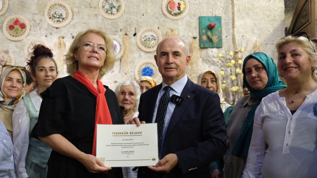 Tarihi Kervansaray’da açılan ve kursiyerlerin el becerilerini, doğaya bakış açılarını seramikten ahşap işçiliğine, ebru sanatından geleneksel el nakışlarına kadar birçok farklı teknikle yansıttıkları özgün eserlerin yer aldığı sergi, 2 Haziran tarihine kadar ziyarete açık kalacak.