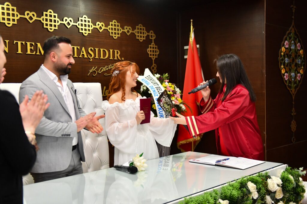 Esenyurt’ta 14 Şubat’ı daha da özel bir gün haline getirmek isteyen 35 çift, aylar öncesinden randevu alarak Esenyurt Belediyesi Nikâh Sarayı’na akın etti. Evlilik tarihlerinin özel olmasını ve unutulmamasını isteyen çiftler, hayatlarının en mutlu günlerinden birini ölümsüzleştirmek için 14 Şubat Sevgililer Günü’nü seçti. Evlenmek için bugünü bekleyen çiftler, 14 Şubat’ı hayatlarının tarihi olarak evlenme cüzdanına yazdırdı. Sabah saat 10.00’da başlayan ve gün boyu süren nikâh merasimlerinde 4 nikâh memuru görev yaptı. Çiftlere, Esenyurt Belediye Başkanı Kemal Deniz Bozkurt adına günün anısına kırmızı gül hediye edildi.