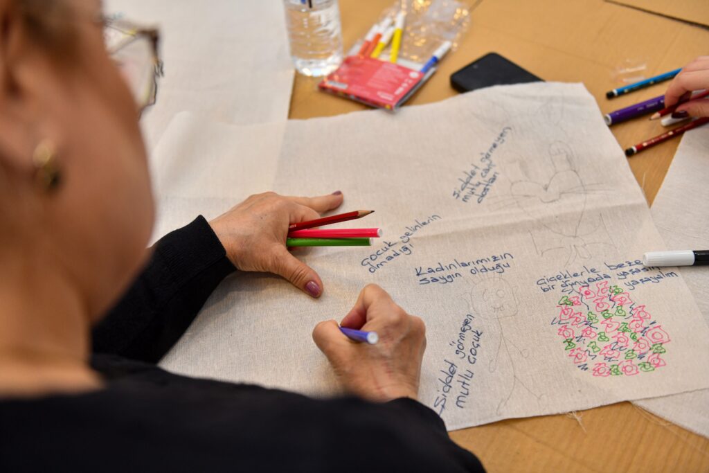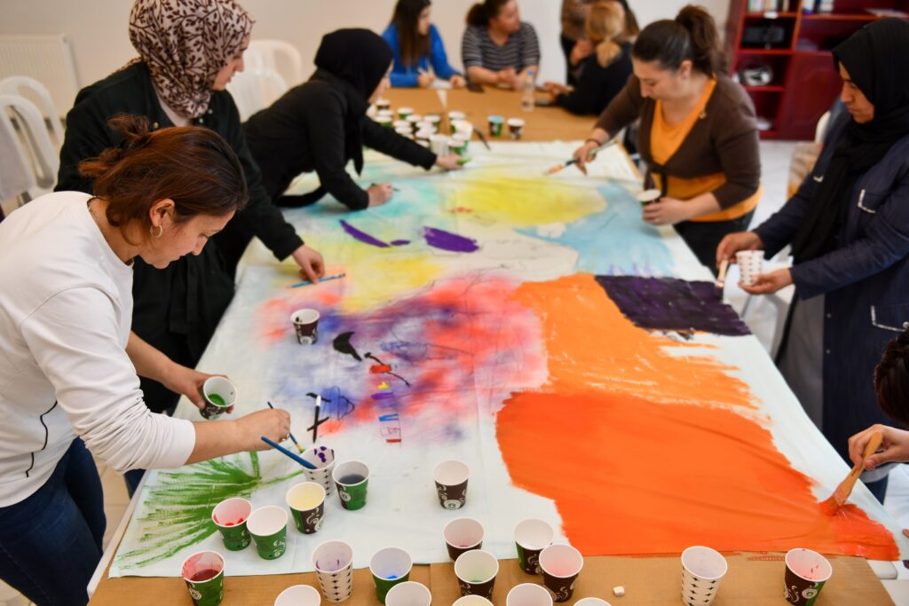 Kadınların her türlü şiddete karşı bilinçlenmesi için düzenlenen programda katılımcılar hem resim yaparak farkındalık oluşturdu hem de yaratıcılıklarını ortaya koyarak birlikte keyifli vakit geçirdi.