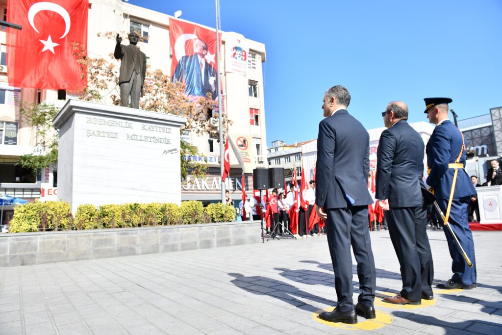 Türkiye Cumhuriyeti’nin 100. kuruluş yıl dönümü kutlamaları, Esenyurt’ta coşkulu bir kalabalığın katıldığı çelenk sunma töreni ile başladı. Saygı duruşu ve İstiklâl Marşı’nın okunması ile başlayan törende, sırasıyla Esenyurt Kaymakamı Fatih Çobanoğlu, Garnizon Komutanlığı adına Hava Albay Muzaffer Oğuz ve Esenyurt Belediye Başkanı Kemal Deniz Bozkurt, Atatürk anıtına çelenk bıraktı, saygı duruşunda bulundu.