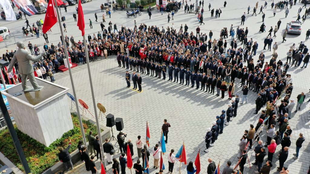 Esenyurt Belediyesi Halk Oyunları kursiyerlerinden oluşan 300 kişilik ekip, Atatürk’ün sevdiği “Sarı Zeybek” oyununu ellerinde Türk bayraklarıyla sahneleyerek büyük alkış topladı. Esenyurt Kaymakamı Fatih Çobanoğlu, Garnizon Komutanlığı adına Tabip Albay Hasan Saygan, Belediye Başkan Yardımcısı Zekeriya Şanlıer, ilçe protokolü, gaziler ve vatandaşların katılımıyla Atatürk Anıtı’nda çelenk sunma töreni gerçekleştirildi.