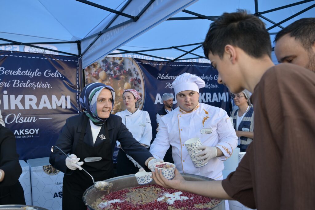 Etkinliğe Belediye Başkan Yardımcıları Zekeriya Şanlıer ve Yeşil Aytulum Turgut ile belediye birim müdürleri katıldı. Vatandaşlarla bir araya gelen yetkililer, aşure kazanlarının başına geçerek ikramda bulundu.