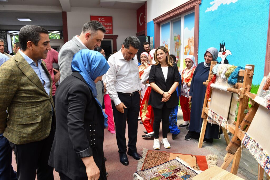 Sergi açılışında konuşan Başkan Özer, sanatın ve sanatçının her daim yanında olacaklarını belirterek şunları söyledi: “Böyle etkinlikler olunca koşa koşa geliyorum. Sizinle birlikte olmak, sizin yaptığınız işleri, ürünleri görmek beni sevindiriyor ve Esenyurt’a dair umutlarımı artırıyor. Öncelikle bu kurslara katılan bütün kadınları yürekten kutluyorum. Bu kursumuzda bin dört yüz öğrenci farklı branşlarda eğitim gördü. Dolayısıyla burada da şunun önemi ortaya çıkıyor: Eğitim önemli bir şey çünkü insanın niteliklerini, yeteneklerini ortaya çıkaran, geliştiren en önemli unsur eğitimdir. Bizim çocuklarımızı iyi eğitmemiz lazım. Sosyal devletin bu görevi yerine getirmesi gerekir ama maalesef bu alanda bir boşluk var. Biz de belediye olarak, genel yönetimler olarak bu boşluğu doldurabilmek için halkımıza hizmet edebilmek için elimizden ne geliyorsa yapıyoruz. Gece gündüz demeden çalışıyoruz, çalışmaya devam edeceğiz. Lütfen etrafınıza söyleyin, bu çalışmalarımızdan bahsedin. Ayrıca yaz aylarında da bizim çocuklarımızla ilgili farklı alanlarda kurslarımız var, örneğin bağlama kursu. Eminin kursiyerlerimizin arasından çok büyük bağlama ustaları çıkacak veya diğer branşlarda herkes kendi alanında çok güzel eserler ortaya koyacaktır. Ben buna inanıyorum. Bu duygu ile buradaki bu son sergimizin açılışını yapıyorum. Esenyurtumuza ve ülkemize hayırlı, uğurlu olmasını diliyorum. Sağ olun, var olun.”