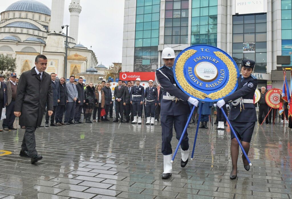 Türkiye Cumhuriyeti’nin kurucusu Gazi Mustafa Kemal Atatürk’ün vefatının 86’ncı yıl dönümü dolayısıyla çelenk sunma töreni düzenlendi. Esenyurt Cumhuriyet Meydanı’nda gerçekleşen törene Esenyurt Kaymakamı Fatih Çobanoğlu, Esenyurt Belediye Başkan Vekili Can Aksoy, Garnizon Komutanlığı adına Hava İkmal Albay Mahir Sinan Çelenk, siyasi parti temsilcileri, sivil toplum kuruluşları, gaziler, muhtarlar, öğretmenler ve öğrencilerin yanı sıra çok sayıda vatandaş katıldı. Atatürk’ün hayata gözlerini yumduğu saat 09.05’te saygı duruşu ile başlayan programda İstiklâl Marşı okundu. Tören, ilçe protokolünün Atatürk Anıtı’na çelenk bırakmasıyla son buldu.