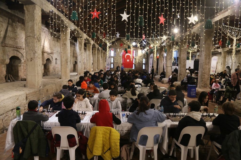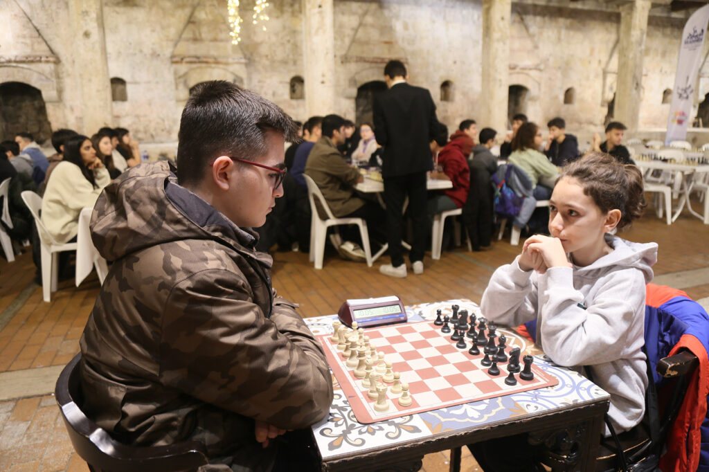 Büyükçekmece Belediyesi’nin Kültürpark tarihi Kervansaray’da düzenlediği satranç turnuvasında genç satranççılar yarıştı.