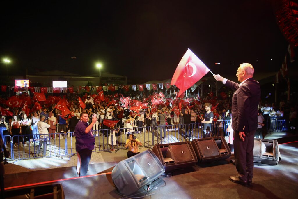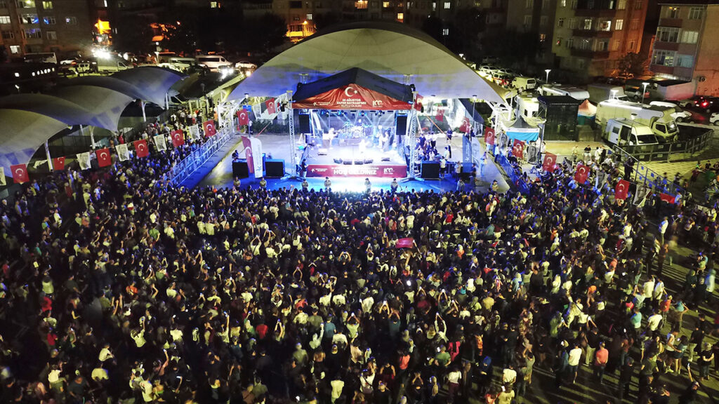 Küçükçekmece’deki kutlamaların ana adresi olan Fevziçakmak Meydanı’nda konser veren ünlü sanatçı Feridun Düzağaç, söylediği şarkılarla zafer coşkusunu doruğa çıkardı.