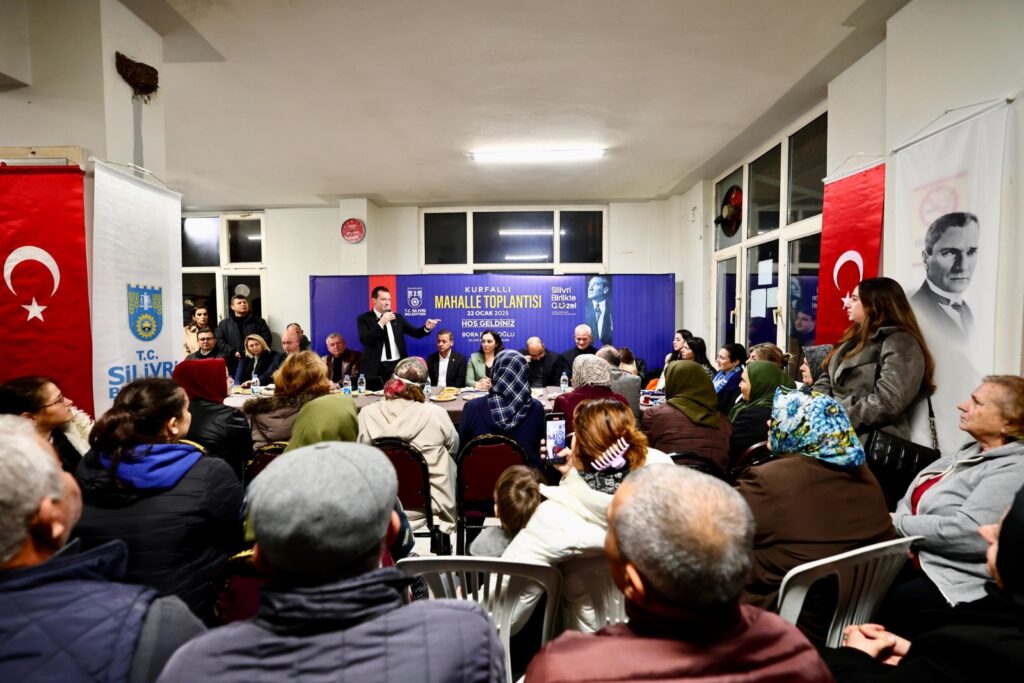 Silivri Belediye Başkanı Bora Balcıoğlu Kurfallı Mahallesi’nde mahalle toplantısı düzenledi. Başkan Balcıoğlu, bölge halkına hizmet etmenin kendisi için bir görevden öte bir vefa borcu olduğunu vurguladı.